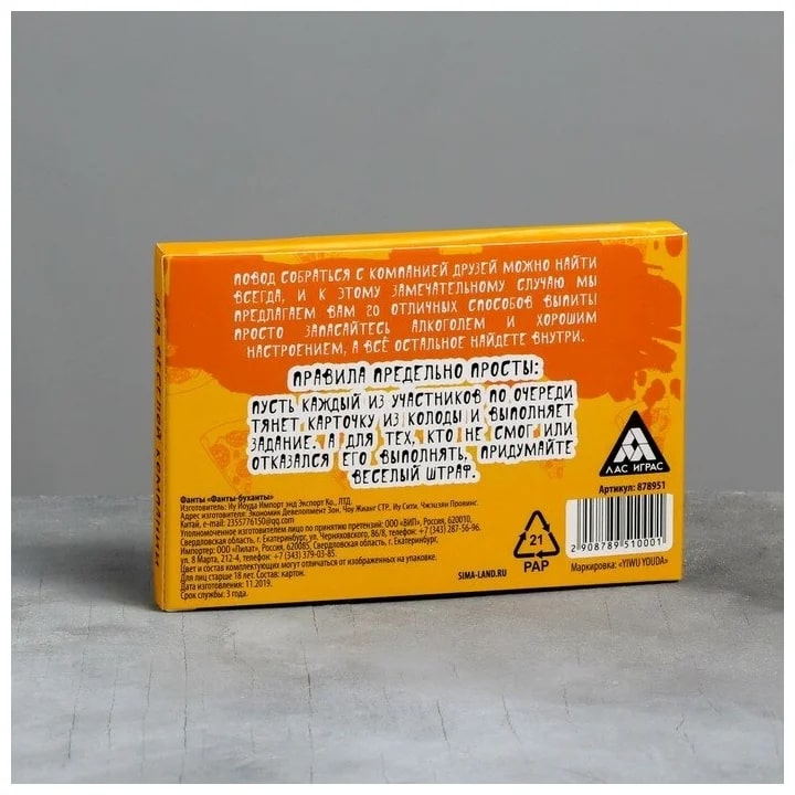 Купить игра для компании "фанты буханты" 20 карт от 100 руб. с доставкой до пункта выдачи в Биробиджане. Интернет магазин ДекаМаркет. Оплата при получении.